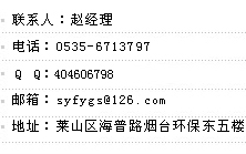 魯ICP備09088268號-1 ![]() 聯(lián)系人:趙經(jīng)理 電話:0535-6713797 傳真:0535-6713797 |